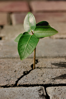 What I’ve learned about breaking through is that it takes patience, trust and faith. It takes stepping out into the unknown. In a previous talk of mind I likened breaking through to a tree or plant that we sometimes find breaking through the concrete or a rock. What I learned by studying this phenomena is that that isn’t what happens at all. Plants or trees that find themselves growing out of the concrete or rocks are created by the wind blowing dirt and seeds and the rain. When the seed has enough strength to grow, it finally anchors its roots into the rock and eventually the roots break through and split the rock or concrete. It takes a lot of strength to do this.
