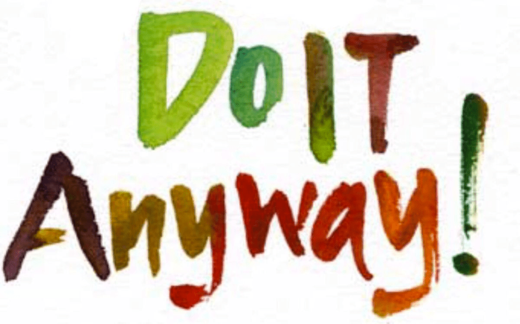 So, I do it anyway. I cannot wait until everything is perfect to be love in the world or to enjoy life or to be good to others. I have to start where I am and do it anyway. Whether it is a lost relationship, a catastrophe where you lose everything, whether you think you cannot believe in good any more, do it anyway. Spirit will never let us down and all our answer will be found within the silence of our own soul.