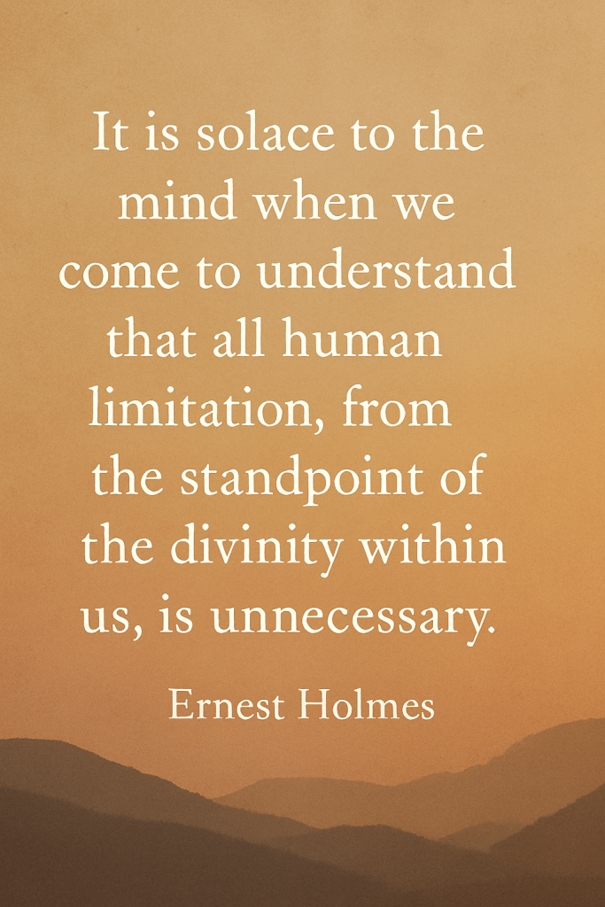 “It is solace to the mind when we come to understand that all human limitation, from the standpoint of the divinity within us, is unnecessary.”